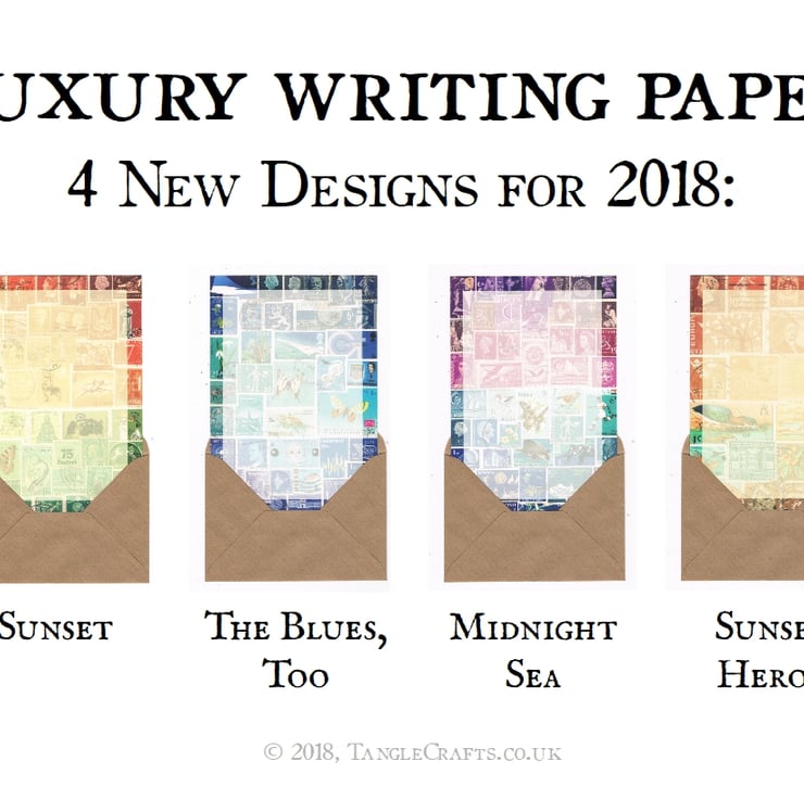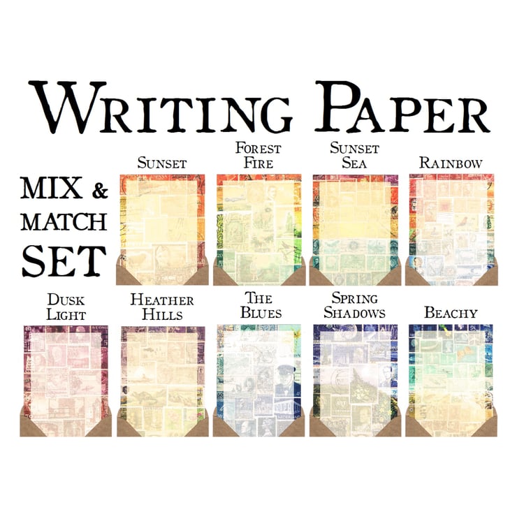 12 sheets each of your favourite design, OR a sampler of 4 designs chosen by me, OR a custom mix of your own choice. See pics 1 & 2 and drop-down menu to select options.
