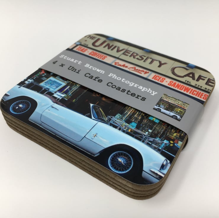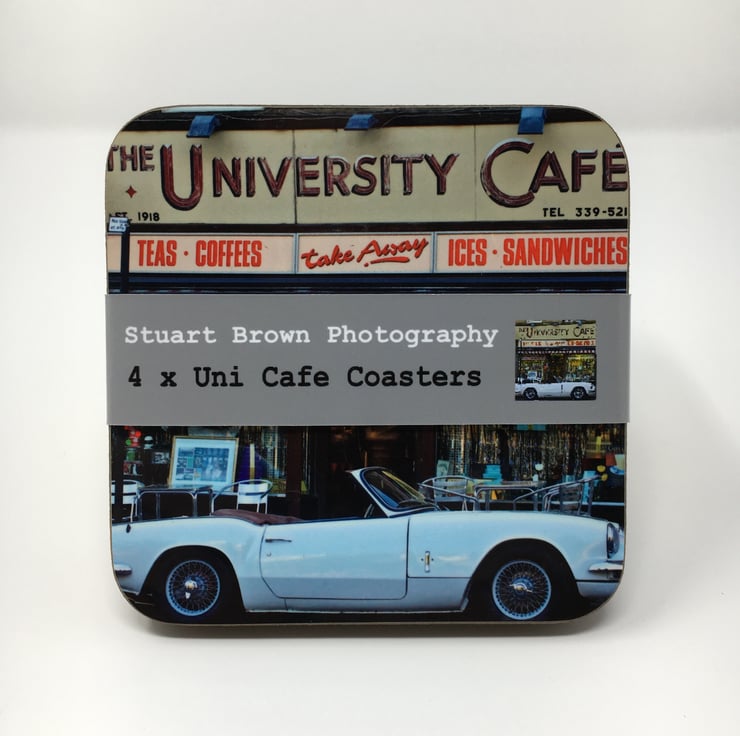 My popular University Cafe / Triumph Spitfire photograph reimagined as part of my new coaster collection