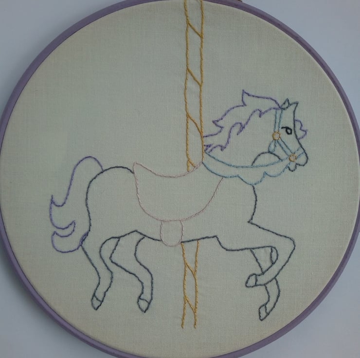 This beautiful carousel horse has been hand embroidered in soft pastel colours.