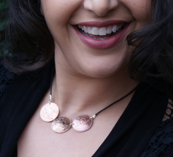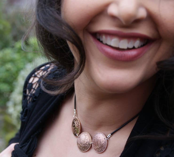 Halfpenny necklace. A necklace made with 3 bronze halfpennies from 1965. It can be with a date of your choosing if you want but that would take time to make and would NOT be next day despatch.)
