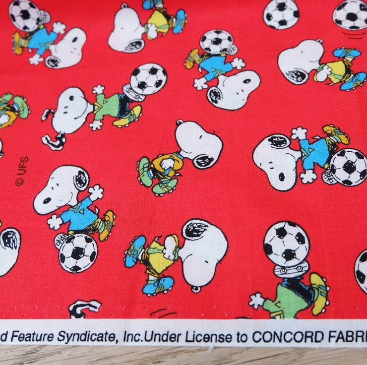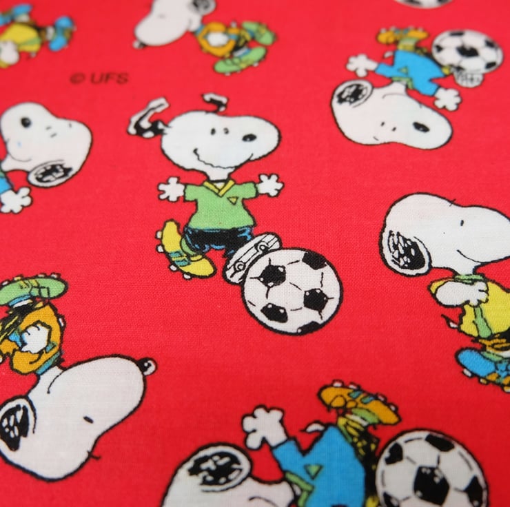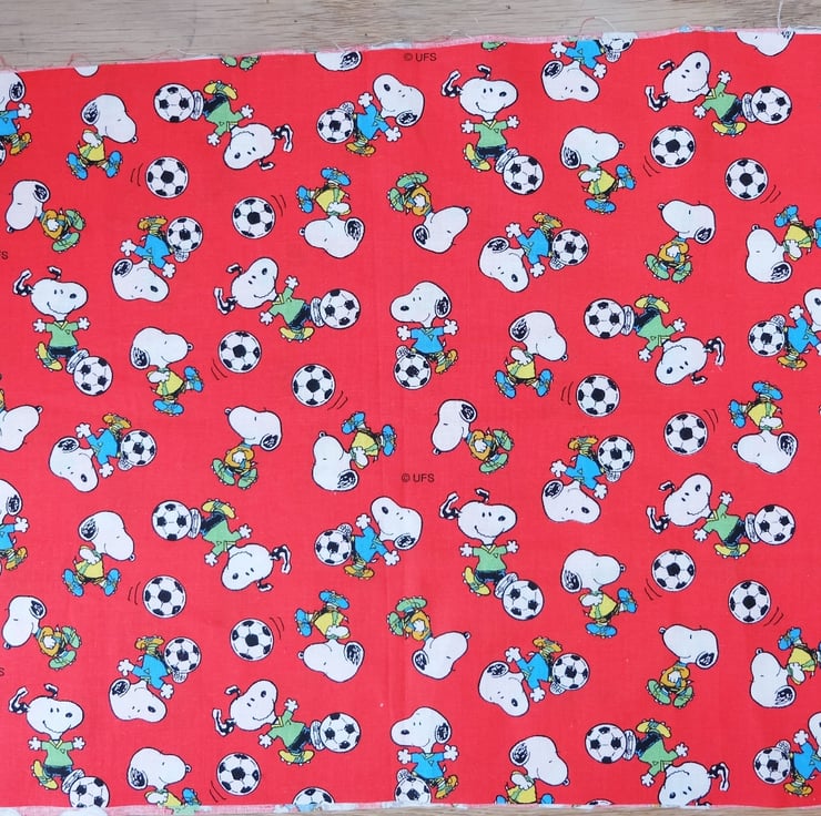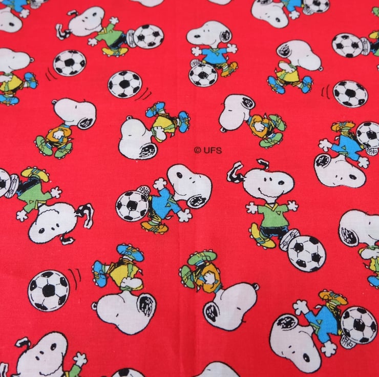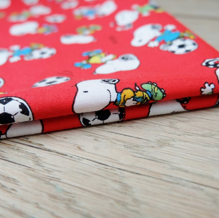 This is a lovely Snoopy fabric in red, with Snoopy enjoying a game of football! It has many craft uses, including apparel, accessories, bunting, little cushions, bags, cases and purses.
