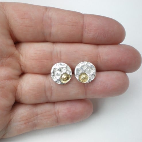 The earrings have sterling silver post and butterfly style earring backs securely soldered to them. The earrings are 1cm in diameter.
