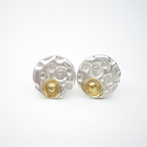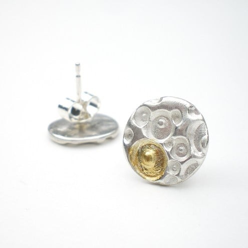 Little fine silver and gold coral textured round post style earrings. Inspired by nature, made from reclaimed silver and gold they make a great eco friendly choice!