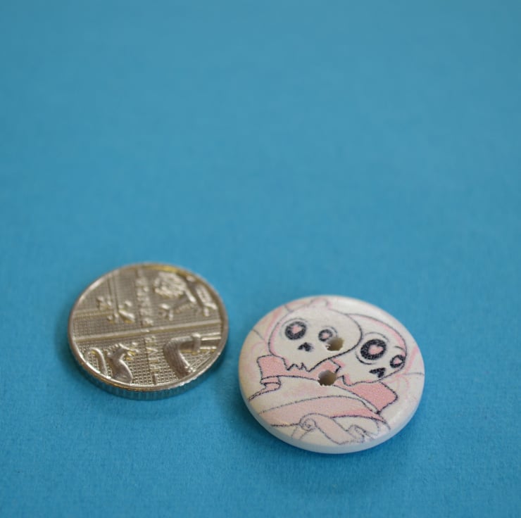 20mm Wooden Skull Buttons 5pk Pink White Goth Button (SK4)