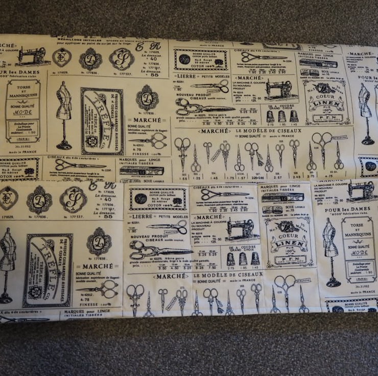 Made from 100% cotton with the fabric on both sides this beautiful fabric showing old fashioned sewing notion designs would make a beautiful addition to any sewing room.
