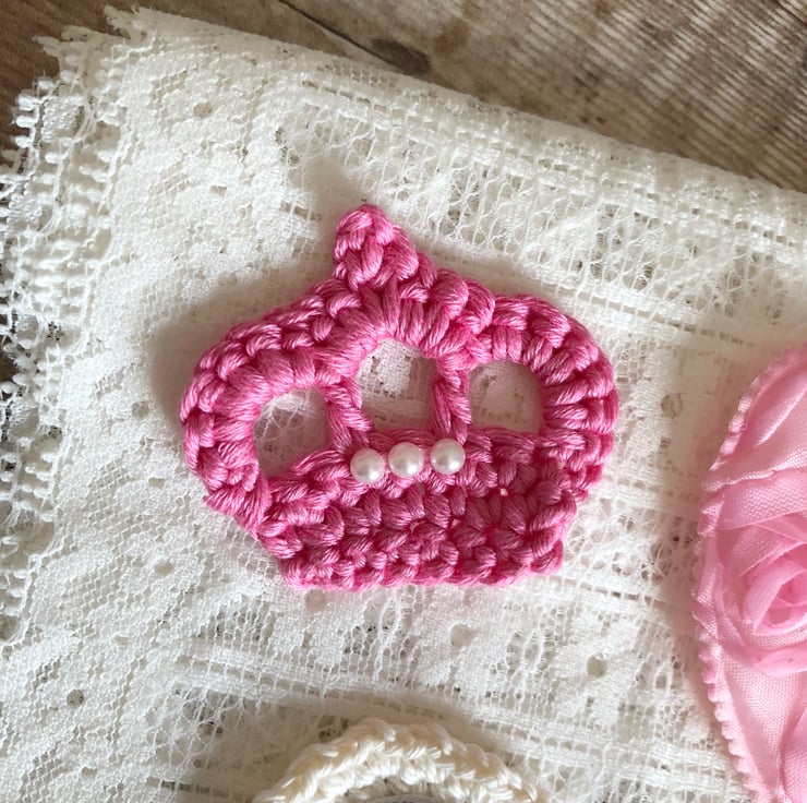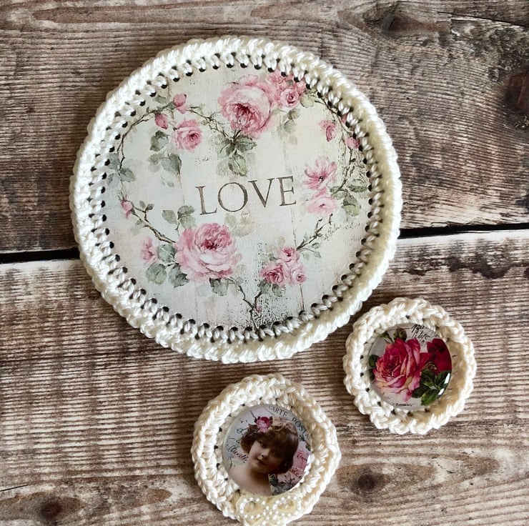 2 x tiny crocheted embellishments with resin clear epoxy sticker