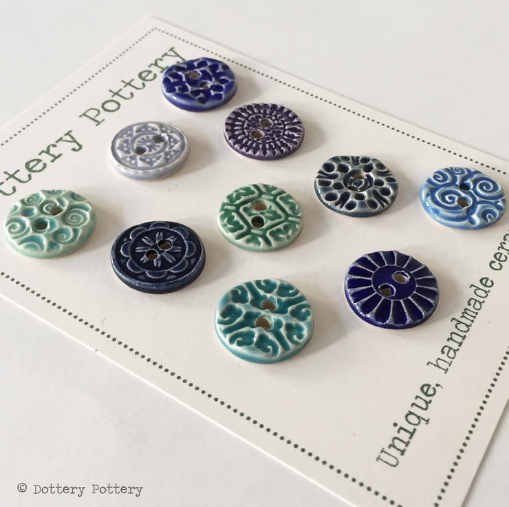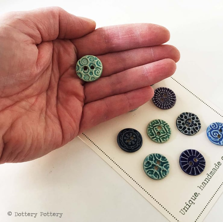 They have been embossed with pattern and then each one has been finished in a rich, glossy glaze on the front of the button only.