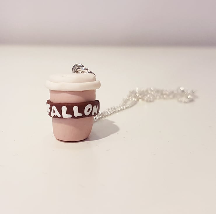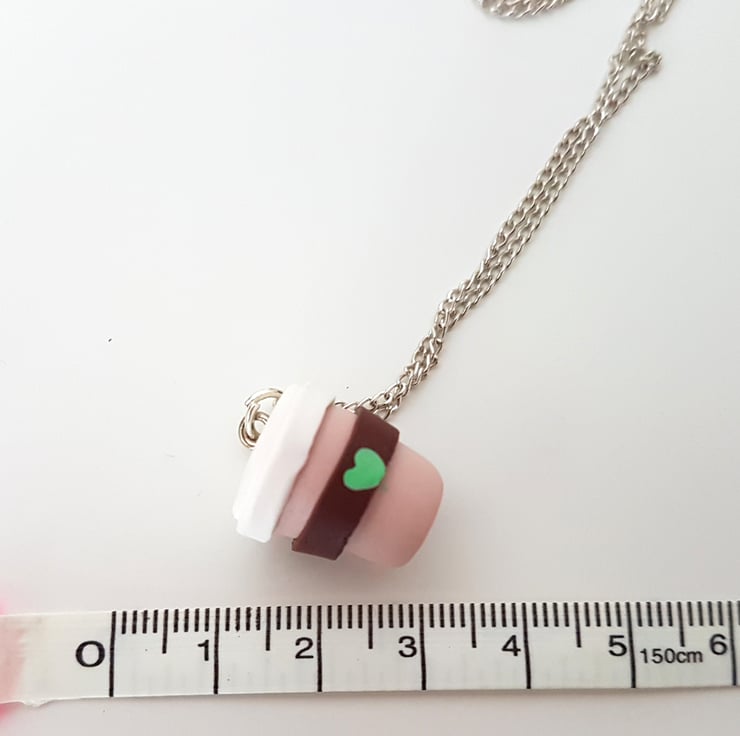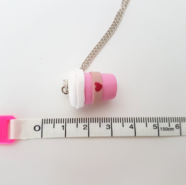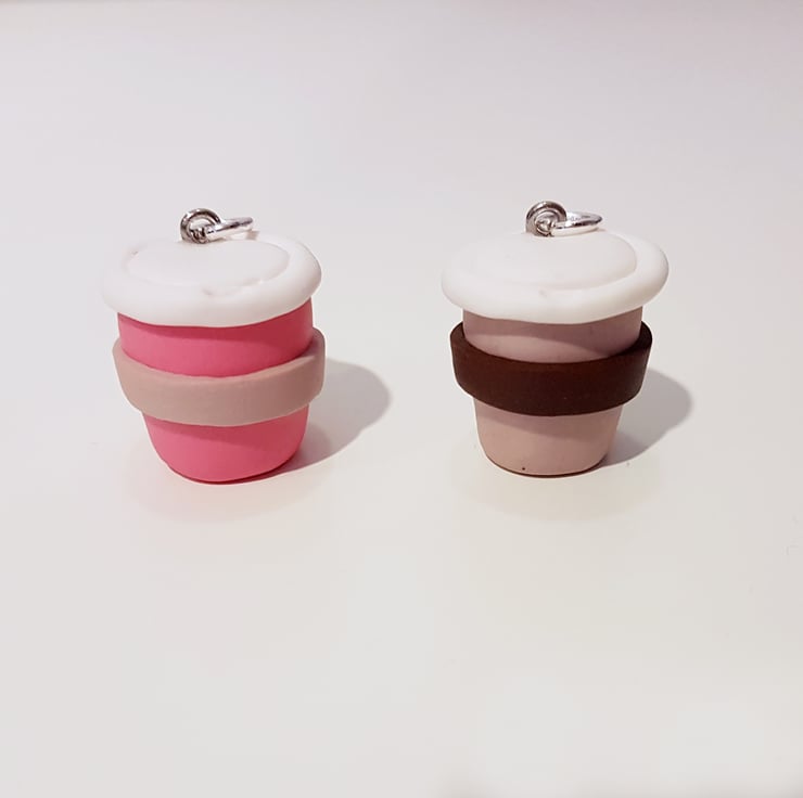 A very cute takeaway coffee cup charm, with a holder round the edge complete with a teeny heart hand painted with acrylic paint!