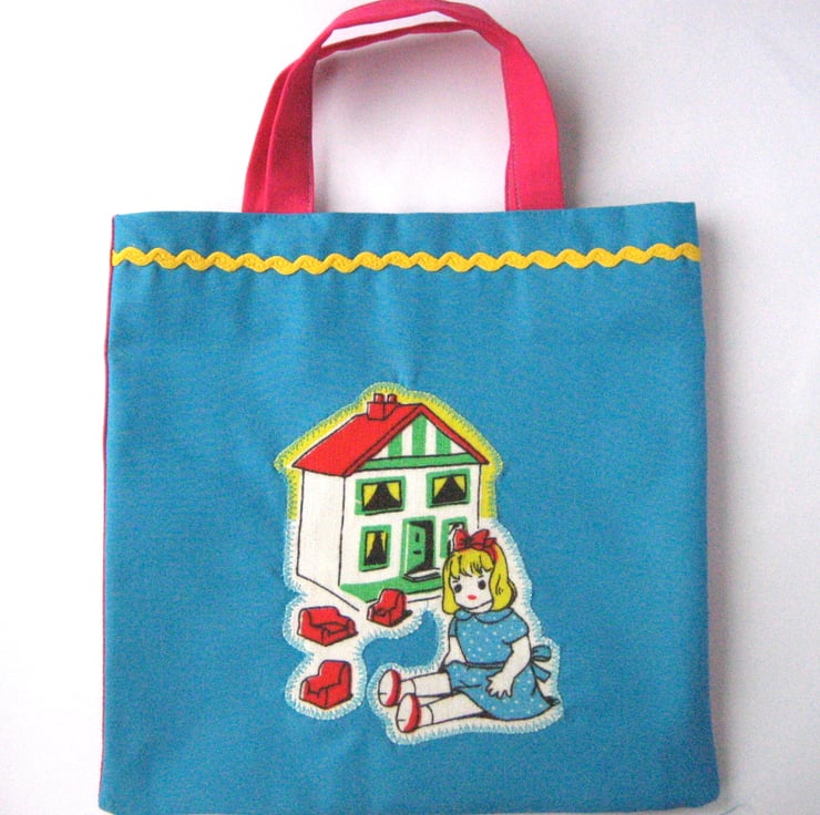 Originally £10, now £4.99. Child's tote bag, doll and doll's house design.