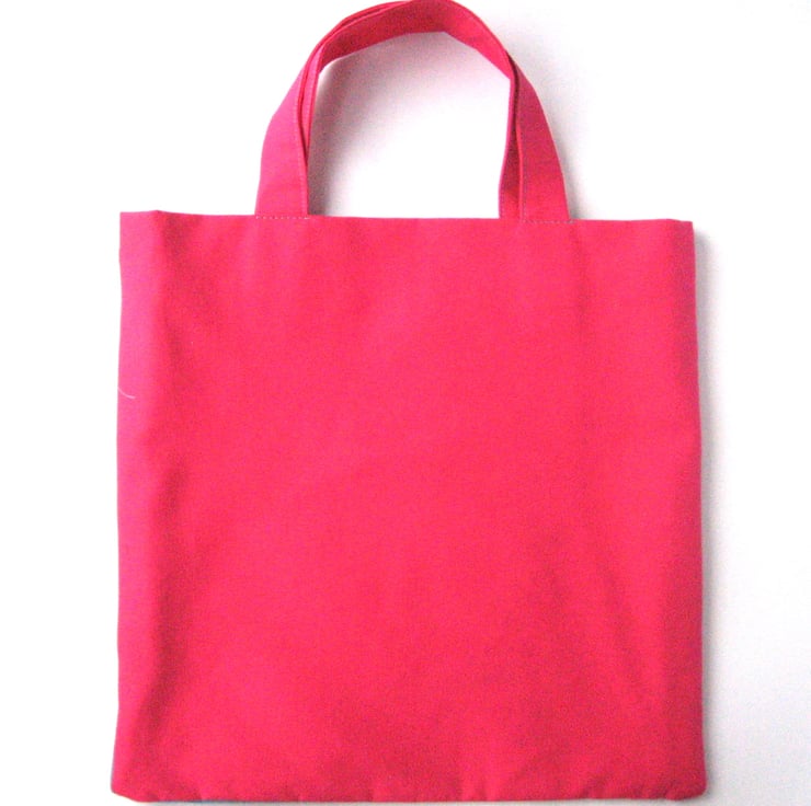 Lined in a pretty butterfly print polycotton, the bag is bright blue on the front and deep pink on the reverse.