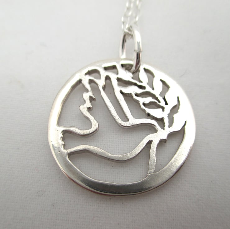 I am known for my sawing (hand piercing) skills, This flying dove necklace ia a gentle symbol of peace for these turbulent times.
