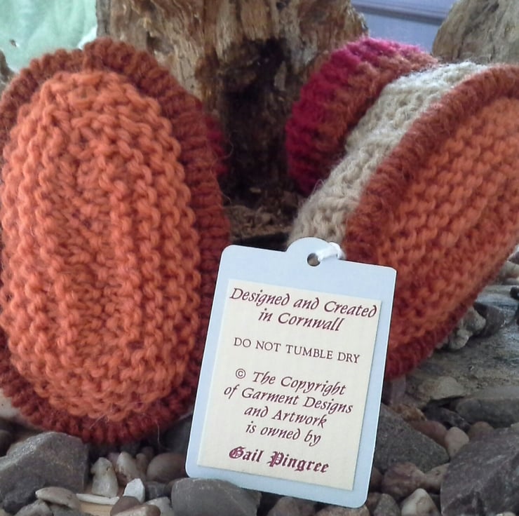 These are a genuine designer product. They have not been recreated using any commercially published knitting pattern. Please respect the designer's profession, skills and modest income for hours of quality workmanship by not trying to reproduce them, including using different colourways and trims.