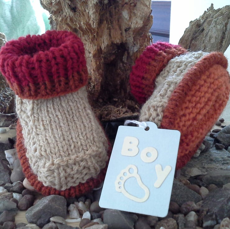 A practical pair of aran booties containing 20% wool for added comfort and warmth to keep those little delicate feet and toes toasty warm whilst out and about and 80% acrylic. The branded British yarns are guaranteed machine washable at low temperatures by the yarn manufacturer.