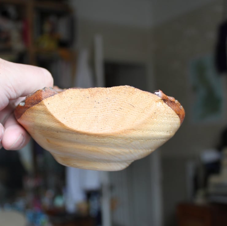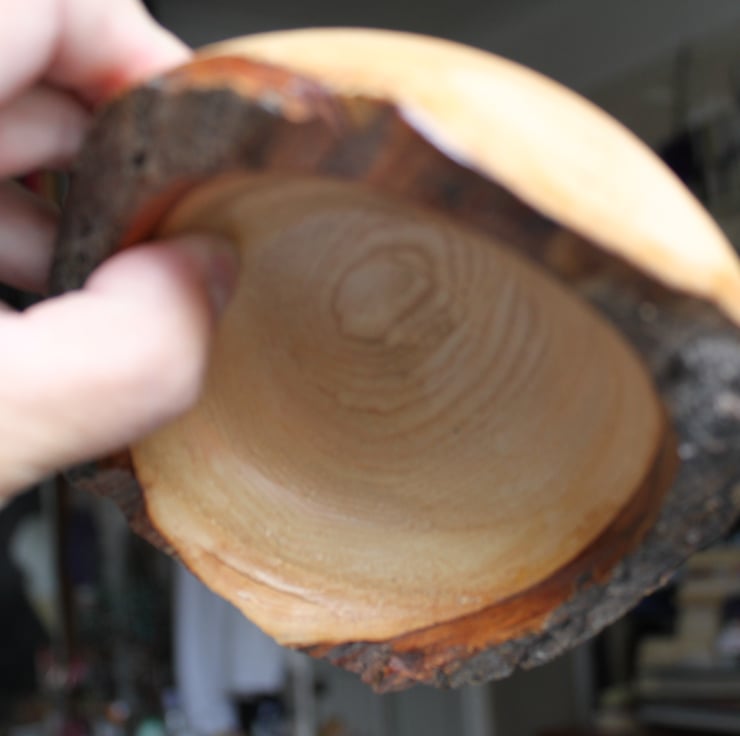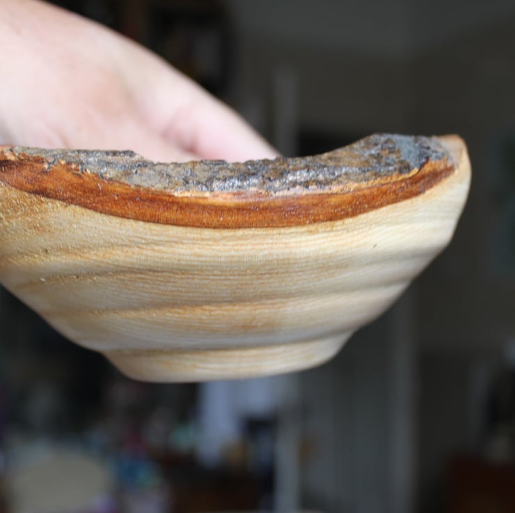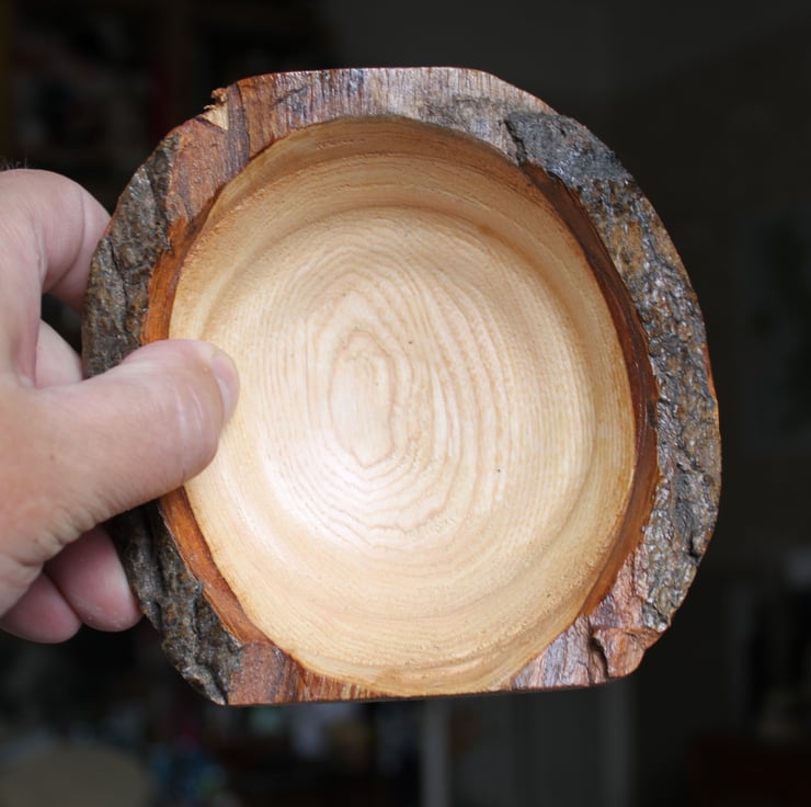I love making things and my wife loves the naturlistic look when the bark remains attached, so I made a few small bowls. This is finished with a melamine lacquer, which Chestnut products say is safe for toys, and on top a light covering of bees wax to give a nice lustre.