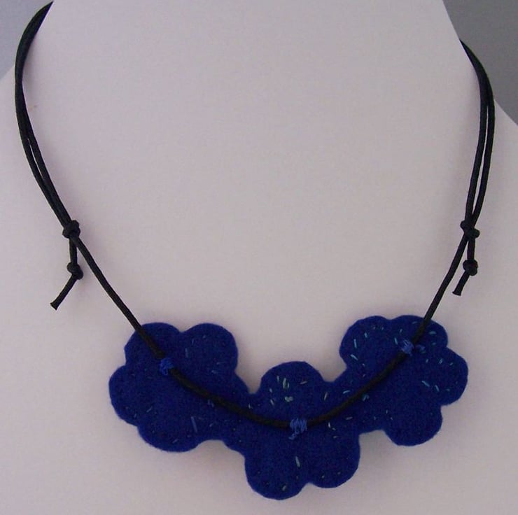 Triple flower textile pendant necklace.