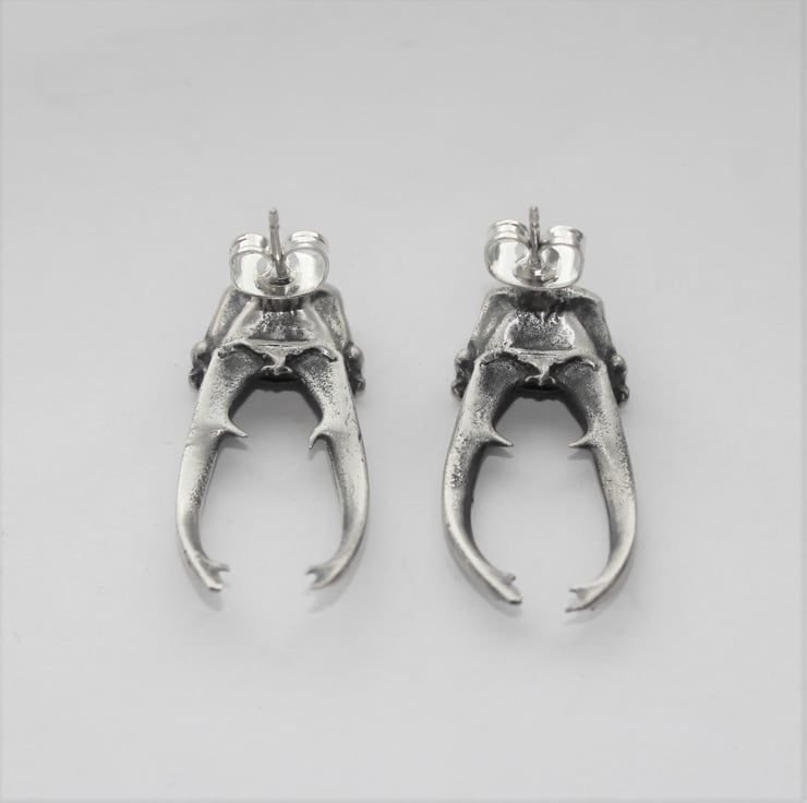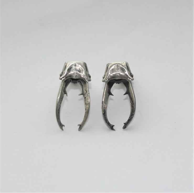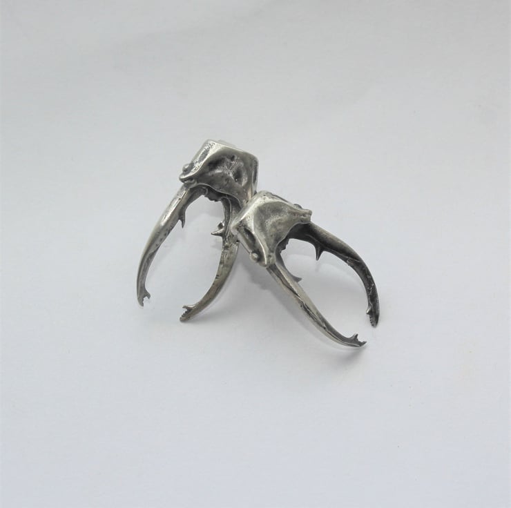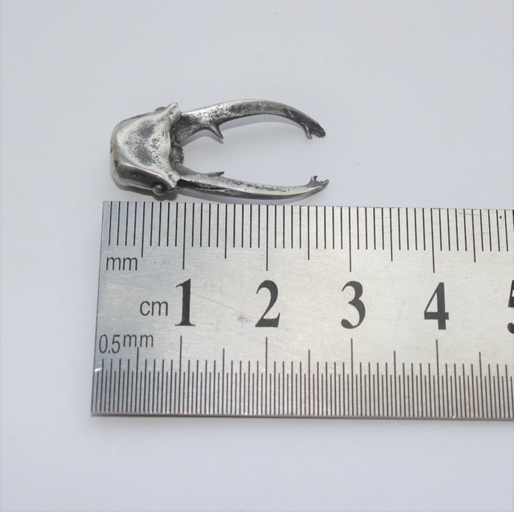 This stag beetle head with mandibles, is cast in sterling silver from a real beetle. As with all my castings from natural and organic materials, every little marking, nodule and texture has been perfectly captured in the casting; leaving a detailed and true-to-life piece of jewellery.