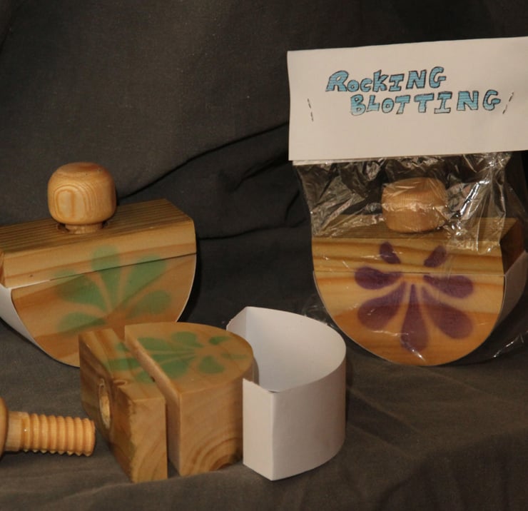 This is made from Pine and has a threaded knob on top, allowing easy replacement of the blotting paper.... see diagram below.