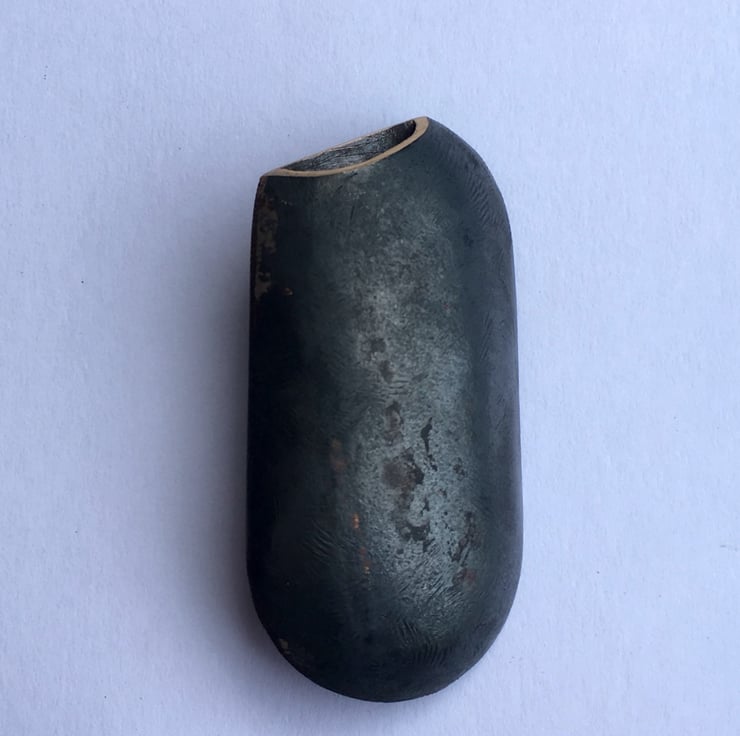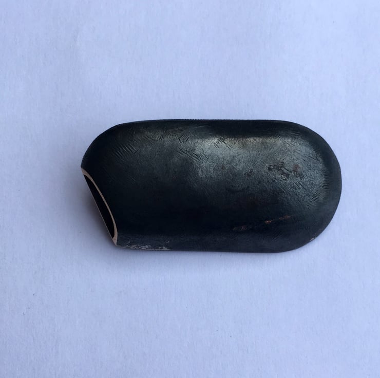 The piece measures approx 5cms long and 3 cms wide with a handmade pin on the back.