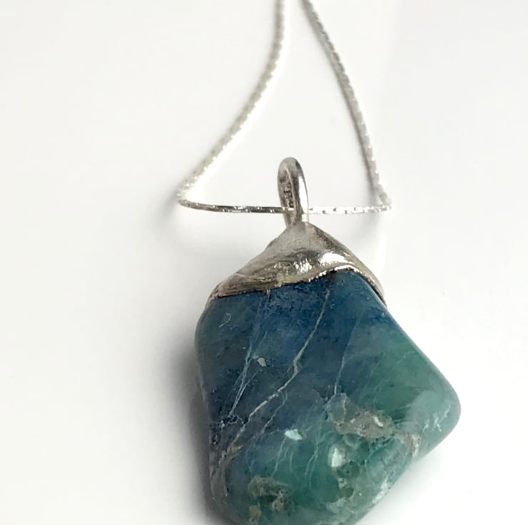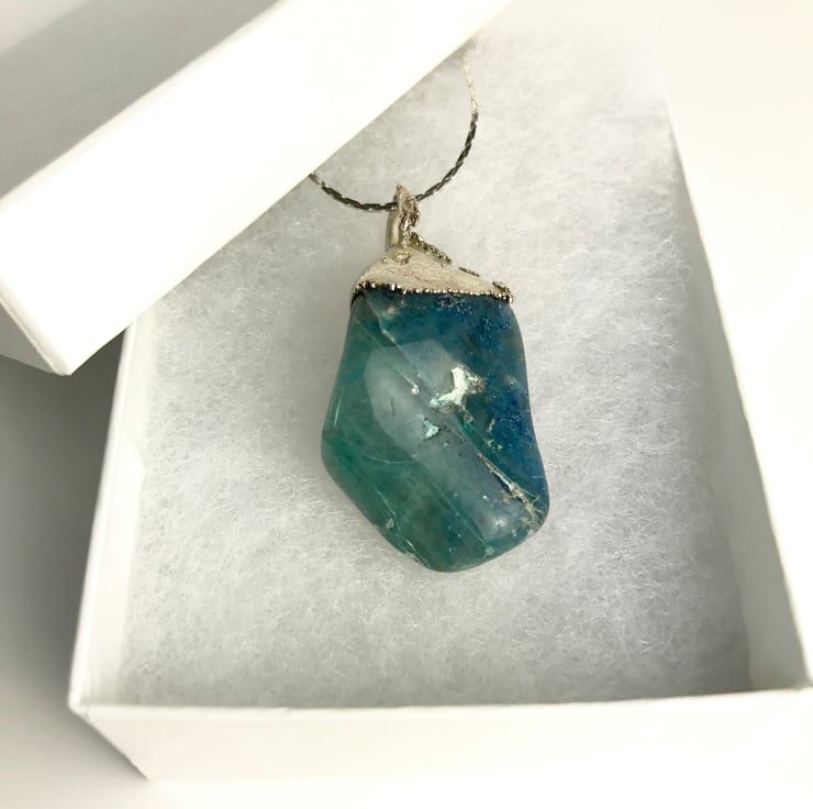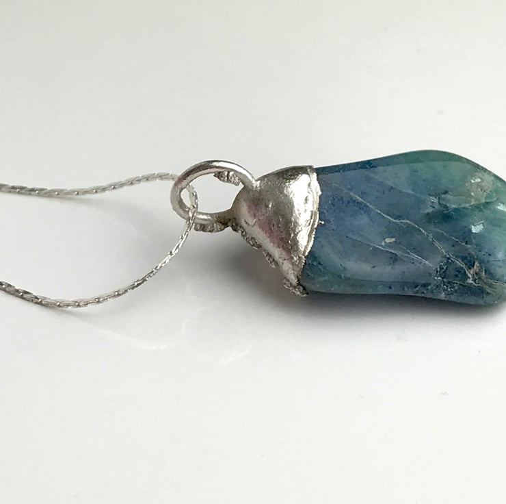 Silver dipped and hanging from a fine silver chain with a lobster clasp.