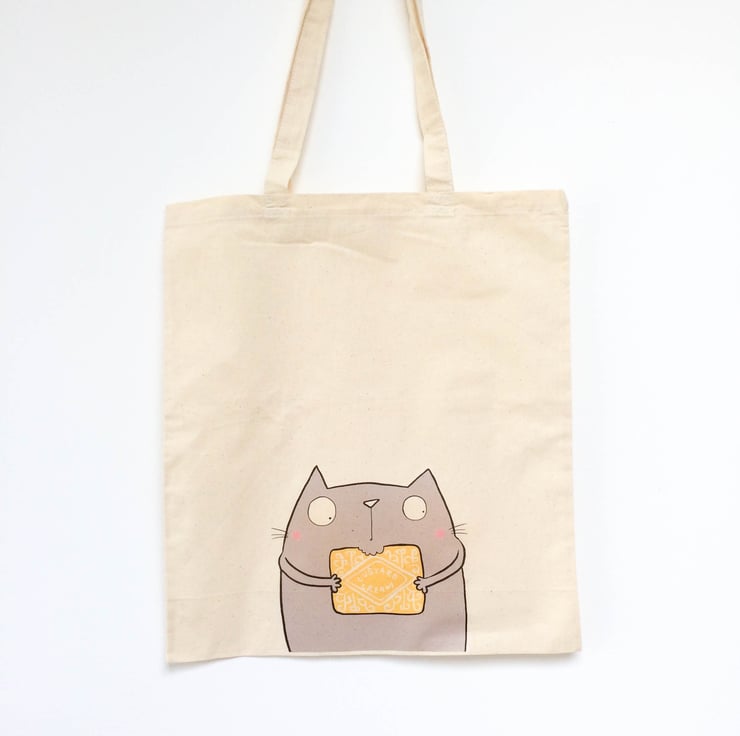 This illustration is printed to heat transfer paper then fixed to a natural, unbleached cotton canvas bag.