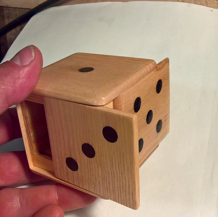 My Grandad made me one when I was ten. I was thrilled and used it as a money box for years until it got lost in a house move. So I've made a few and now my Mum and Dad, daughters, nieces and nephews all have one, so I'm offering them out. They are not perfect yet, getting the exact tolerances is very hard, so please don't expect perfection, but they aren't bad. Getting a door that fits and slides but isn't too loose or too tight is very exacting and I'm slowly getting there, in the mean time I'm offering the ones that aren't too bad.They take a lot of time to make , so I'm sorry about the high cost, hope you enjoy owning one. (btw, I make them so that the three and five slide, but don't tell any one!)