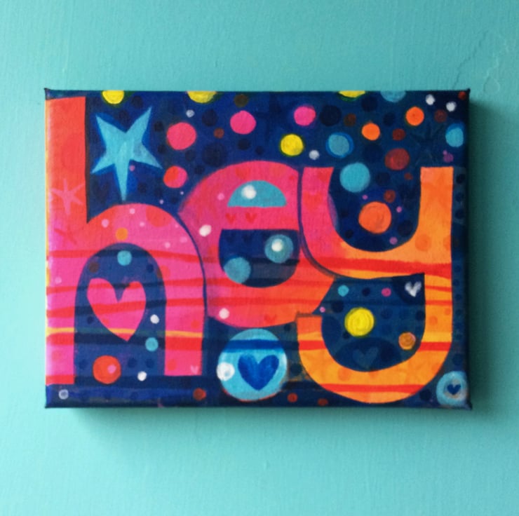 HEY an original word  painting by Jo Brown, acrylic on canvas - affordable art
