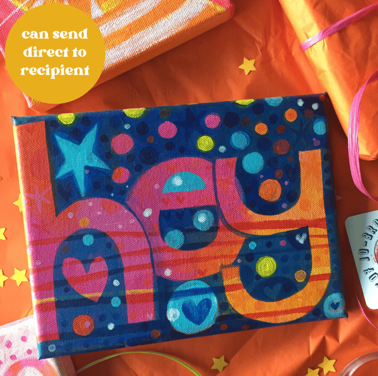 HEY an original word painting by Jo Brown, acrylic on canvas - affordable art