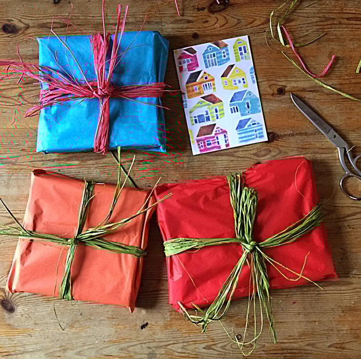 Happy colourful gifts by Jo Brown, can be sent direct to recipient, with a handwritten note.