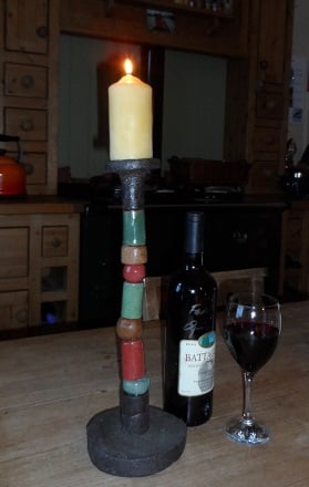 I looked for ages for Colourful, rustic Candlesticks to use in our Farmhouse kitchen and could not find the right thing, so decided to design and make my own! We have a busy house often full of people and dogs, so they had to be safe ! I love building my Candlesticks, and watching the colours work together.