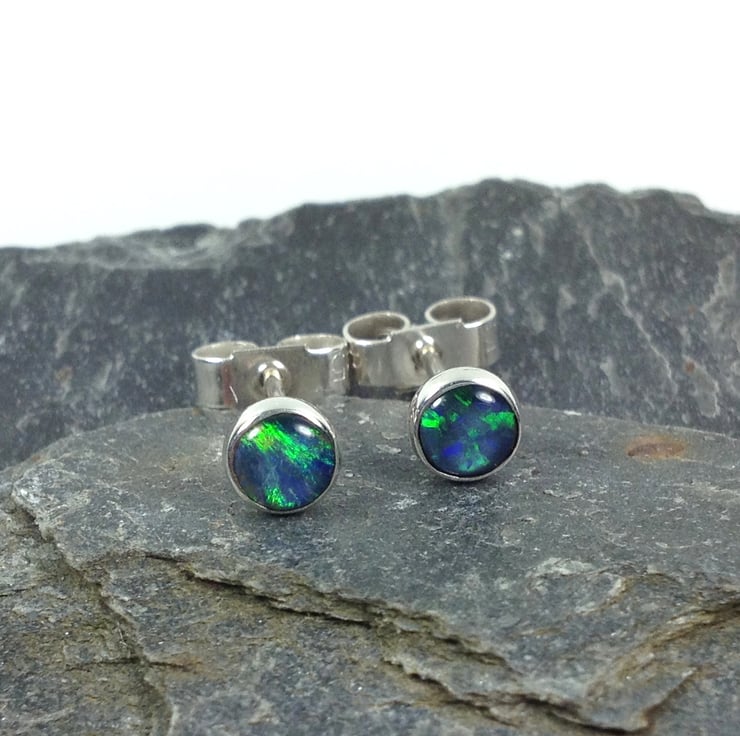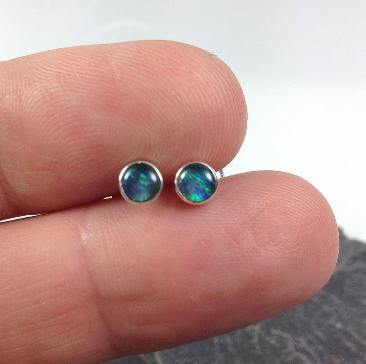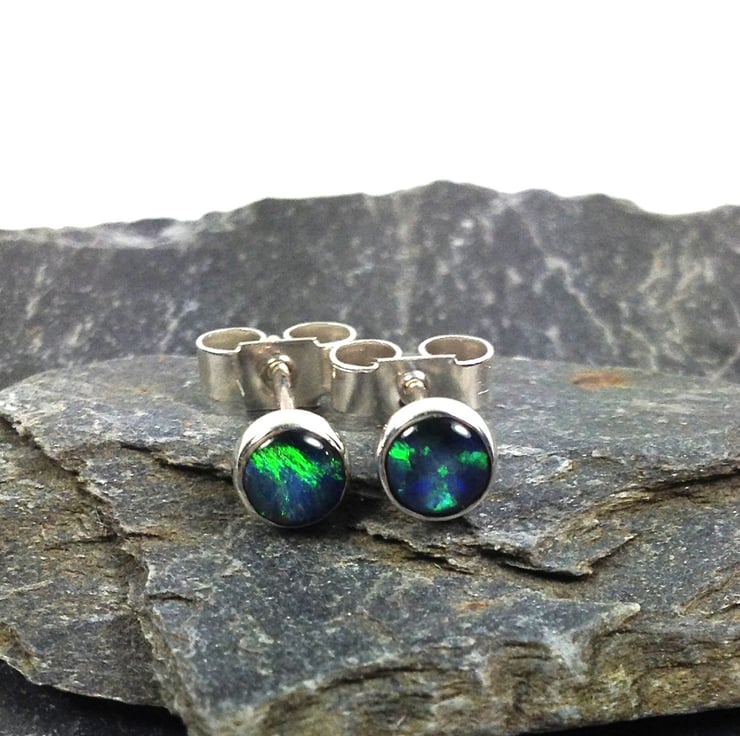 Simple sterling silver stud earrings set with stunning opal triplet cabochons.