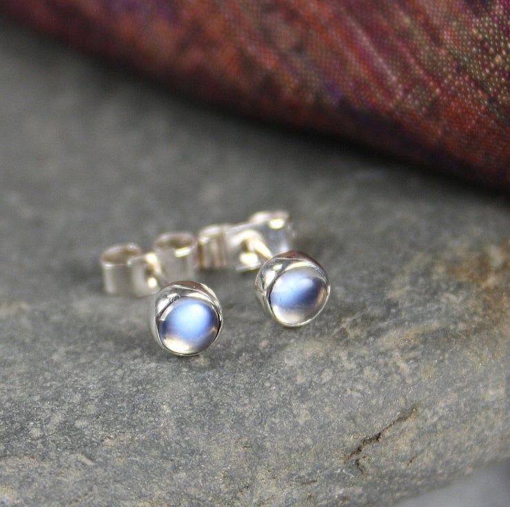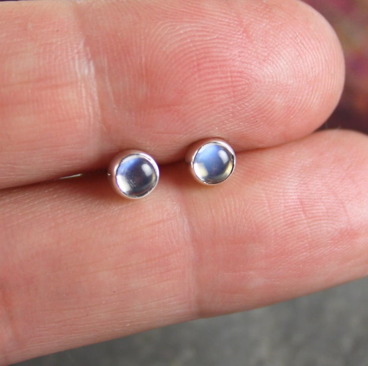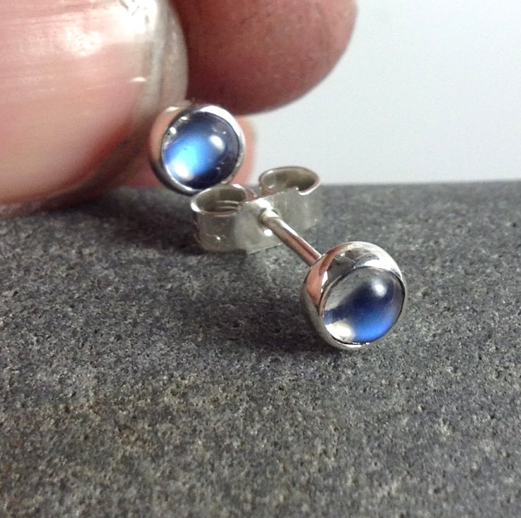 Tiny blue moonstone gemstone studs