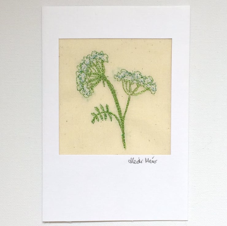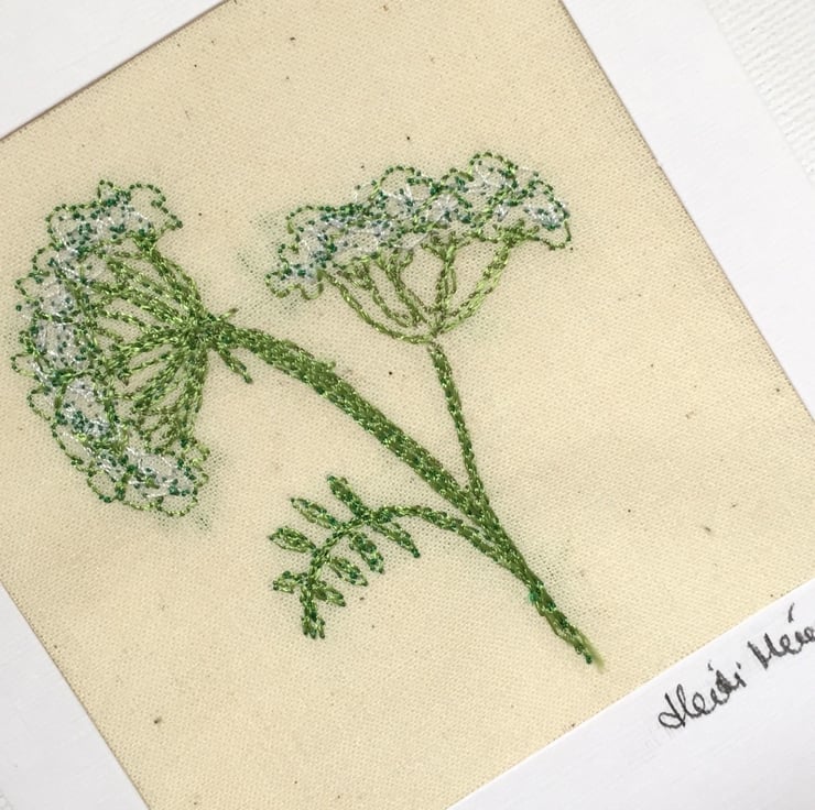 This Birthday card floral design is free style embroidered cow parsley flower card created as a one-off by Heidi Meier. Cow parsley is one of my favourite floral/ flowersubjects!