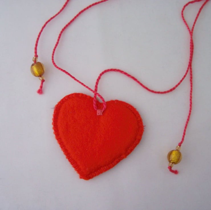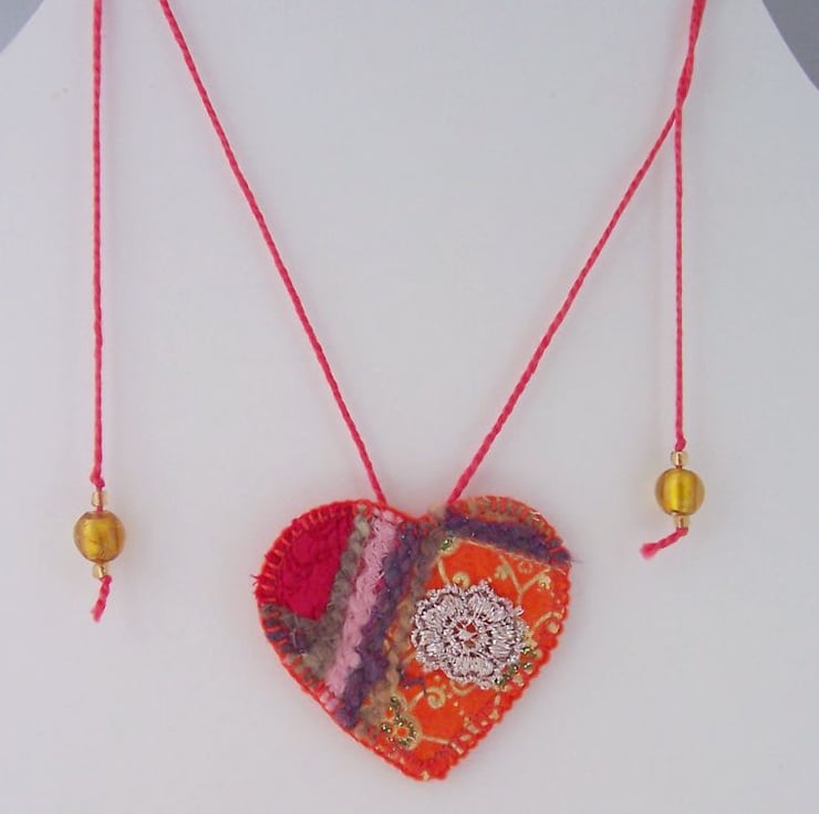 The pendant is backed with wool felt and then handstitched onto a soft cord and fastened using a macrame slip knot and glass beads. This design simply slips over the head and you then shorten it to your preferred length.