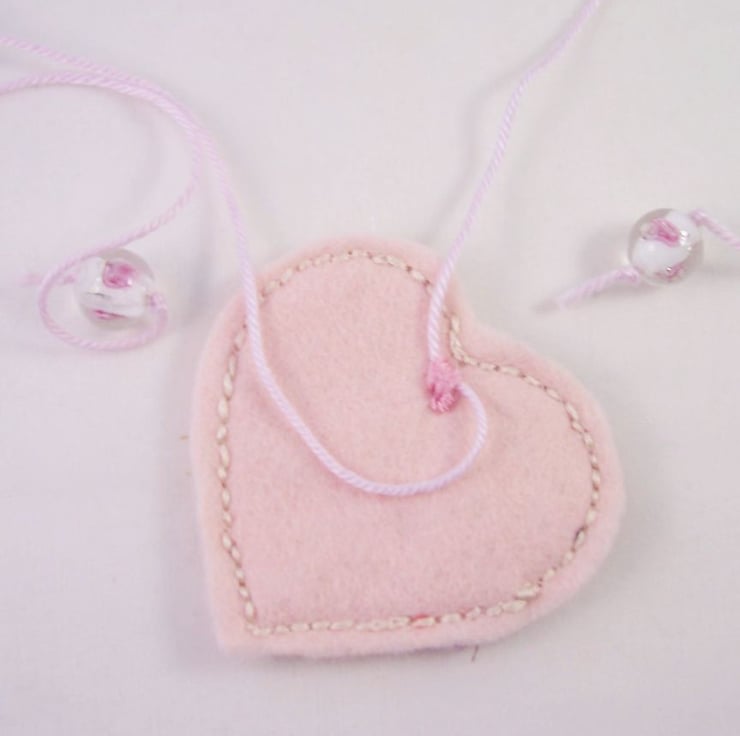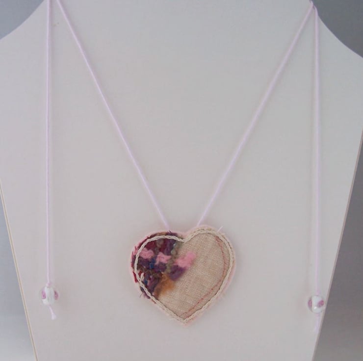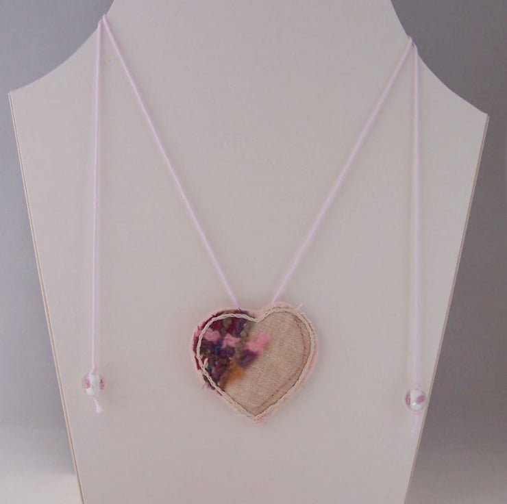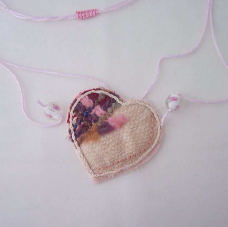 The pendant is backed with wool felt and then handstitched onto a soft cord and fastened using a macrame slip knot and glass beads. This design simply slips over the head and you then shorten it to your preferred length.