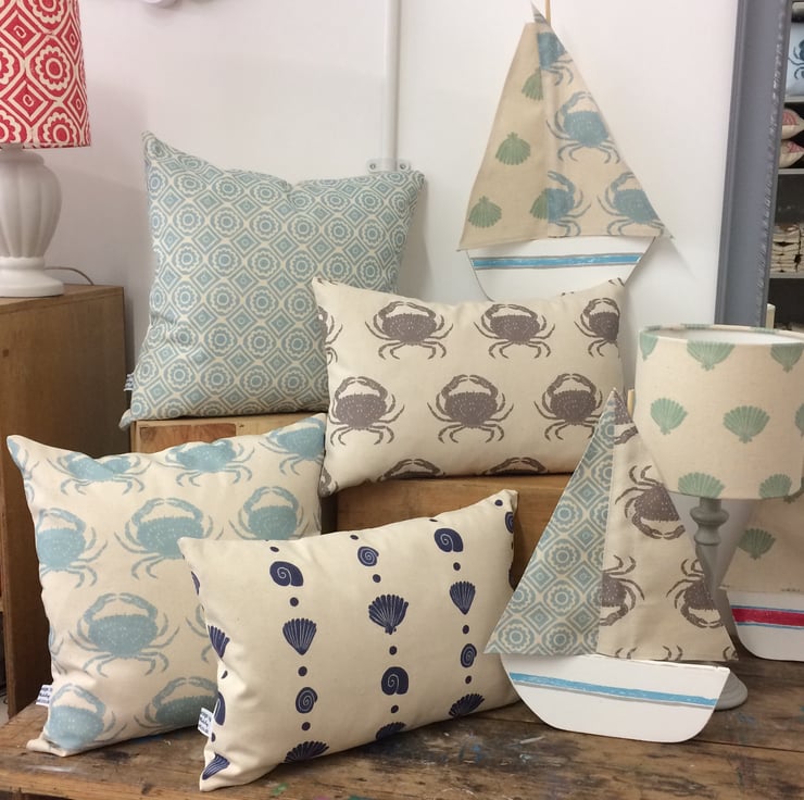 All the fabrics here are designed by me and printed in the UK. I make all the products in my Cotswold studio. I aim at posting items off within three days, with the exception of fabric which you should allow 14 days for delivery. If you are interested in purchasing fabrics, please contact me for a free sample.