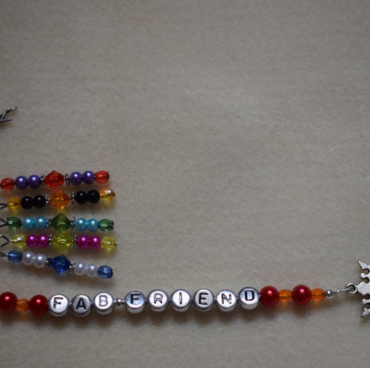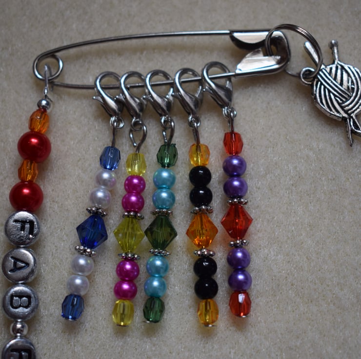 There are 5 stitch markers hanging for the bag charm with a Tibetan silver pendant at the side.