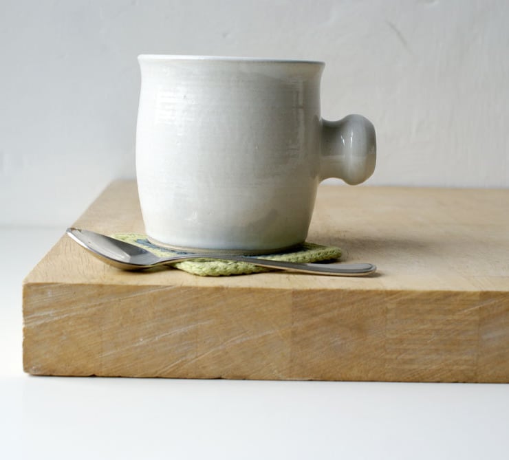 Each one features a knob handle to the side of the to get your hands wrapped around the cup. Their flat bottoms will sit firmly on your table and it have been hand stamped with the Little Wren Pottery seal to mark them out as unique handmade pieces.