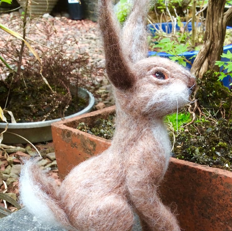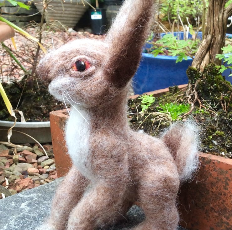 Needle felted sculpture made from British wools over a wire armature, and can be bent into a different pose if desired. He is 25cm x 17cm approx.