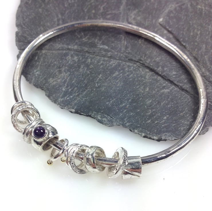 The bangle and beads have been burnished to a bright finish.