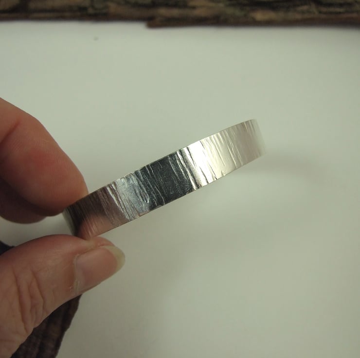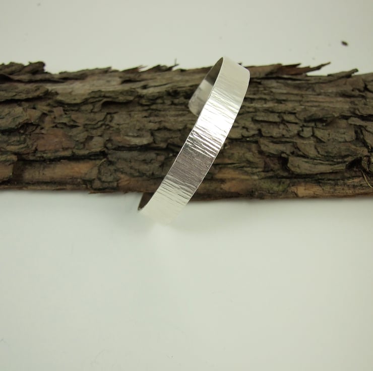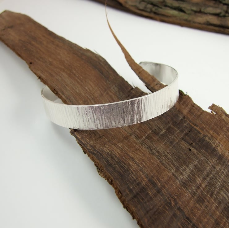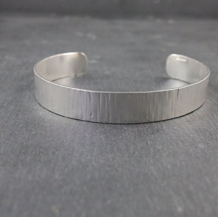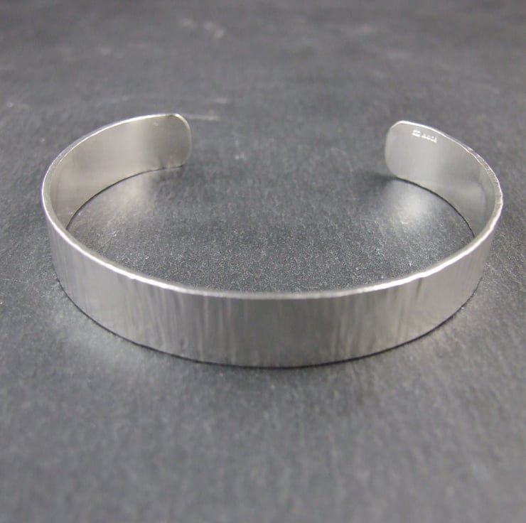 Hand forged sterling silver cuff which I have cut from 1mm thick silver then shaped, hammered and shaped to fit the curve of your wrist. This is a substantial weight bracelet to fit small to medium wrist 2.25 inches (5.7cm) inside diameter and 7.5 inches (19.1cm) circumference allows for 1 inch opening.
