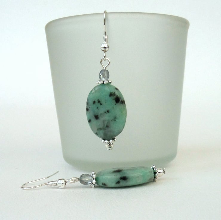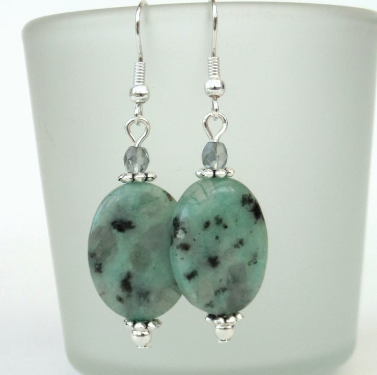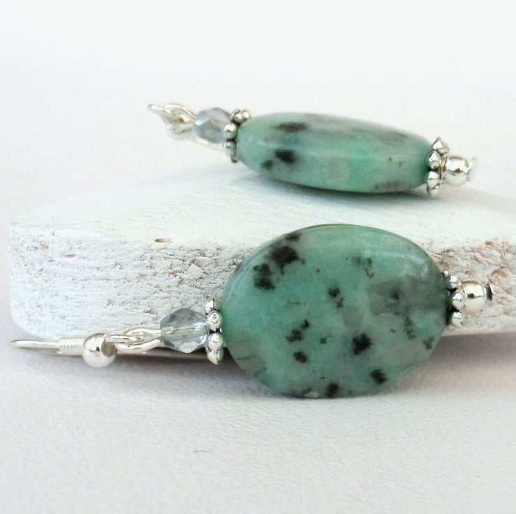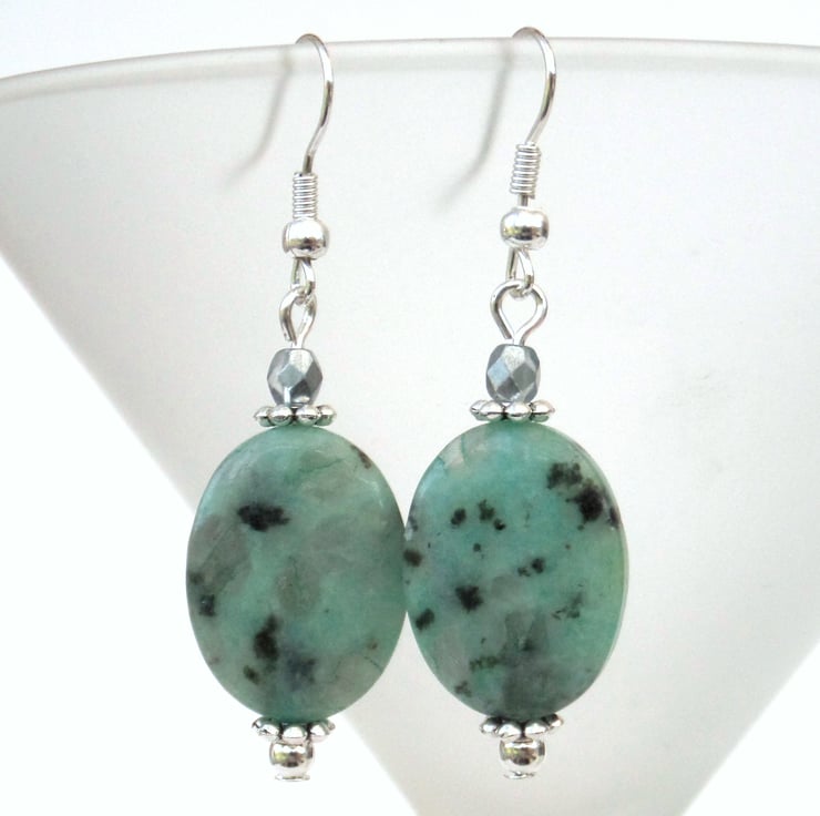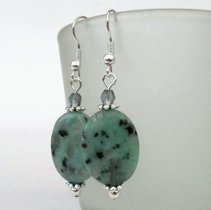 The jasper ovals measure around 2 x 1.6 cms and the drop of the earrings, as measured from the base of the earwires, is approximately 3.2 cms / 1.25 inches.