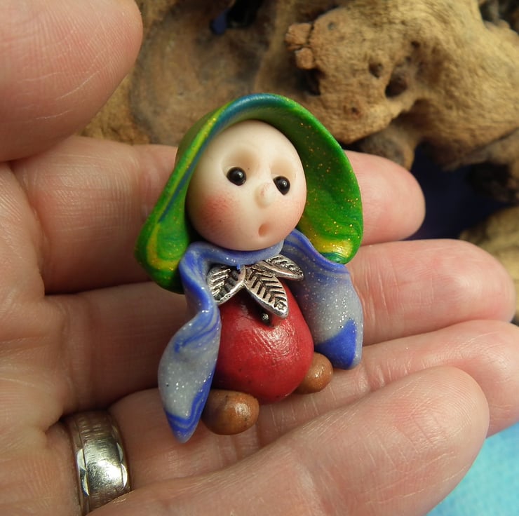 This is a 'one of a kind' creation having been entirely handmade without the use of moulds here at my studio on the Sussex Coast. Modelled with Prosculpt polymers, painted with heat set paints before sealing with lacquer, Ferne has sparkling black onyx eyes. Ferne the helpful Gnome Maiden is just one and a half inches tall.