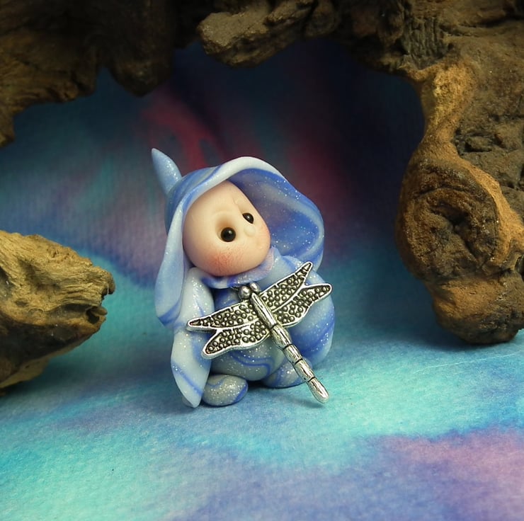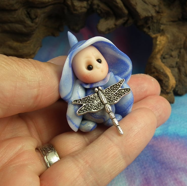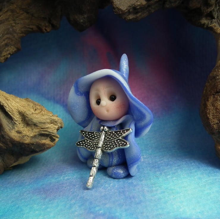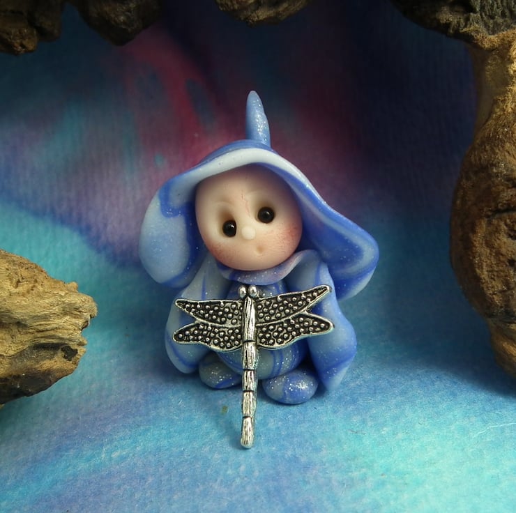 This is a 'one of a kind' creation having been entirely handmade without the use of moulds here at my studio on the Sussex Coast. Modelled with Prosculpt polymers, painted with heat set paints before sealing with lacquer, Hann has sparkling black onyx eyes. Hann the helpful Gnome Maiden is just one and a half inches tall.