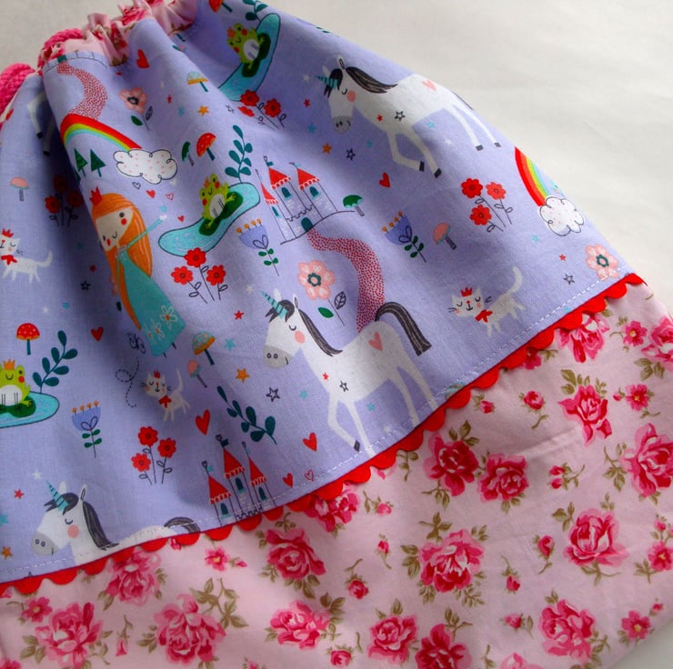 A very pretty girls Drawstring Bag , ideal for storing bits & bobs / gift bag / toys / books .
