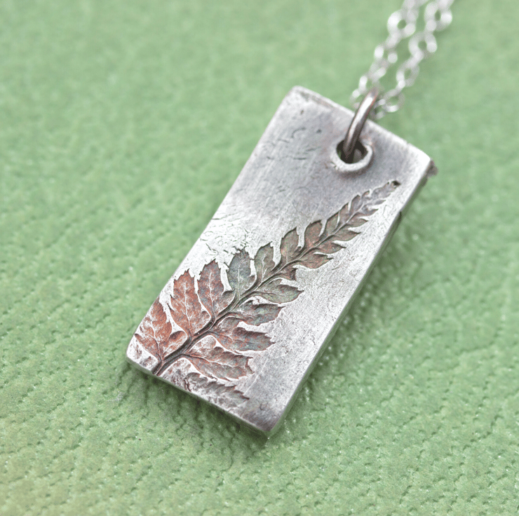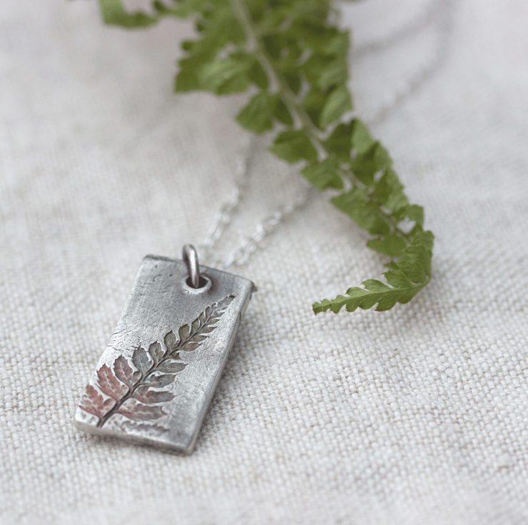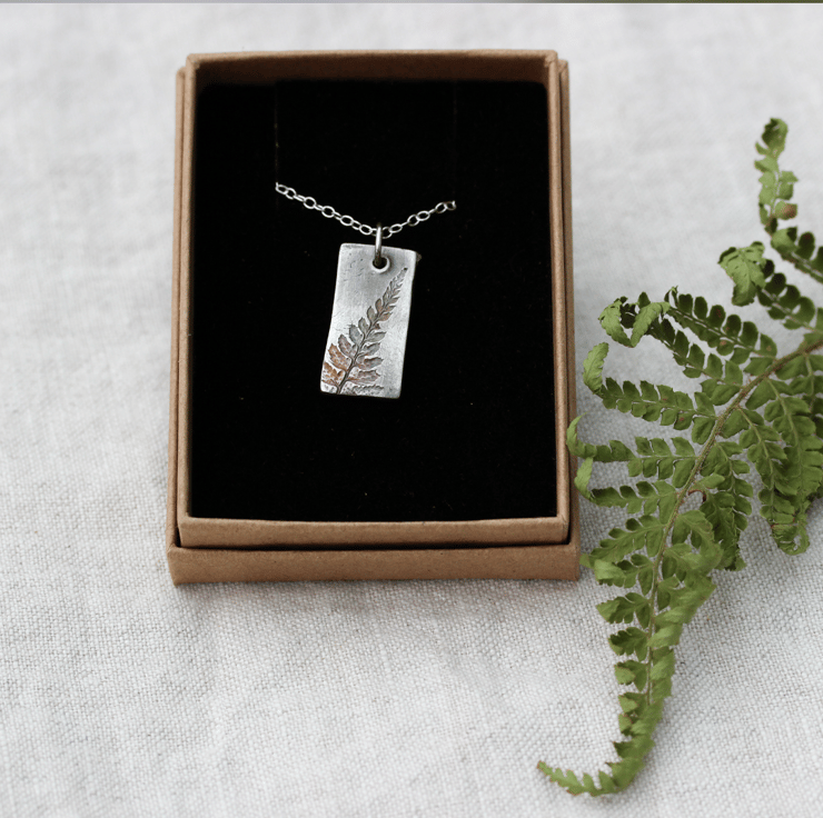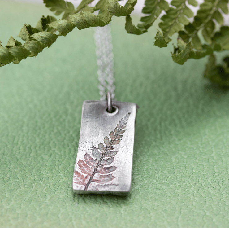 I've lightly oxidised this leaf pendant for a rustic effect and to enhance the fern print with a lovely sheen!