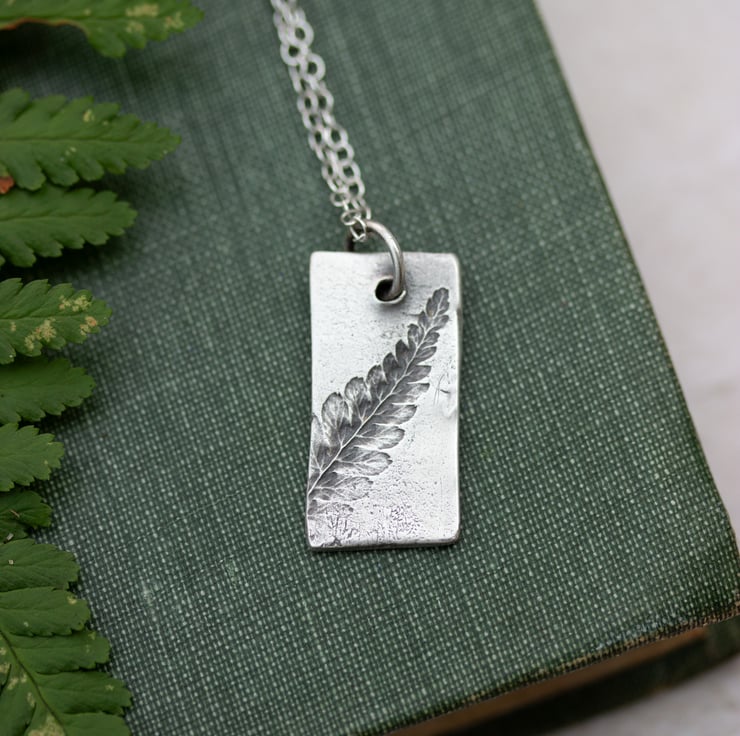 This pendant is handmade from recycled silver and impressed with a real fern leaf from my garden!