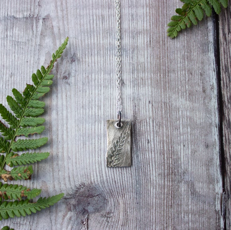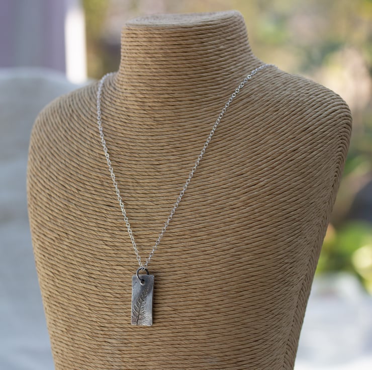 Beautiful ecosilver fern leaf pattern oxidised rectangle pendant, inspired by nature.