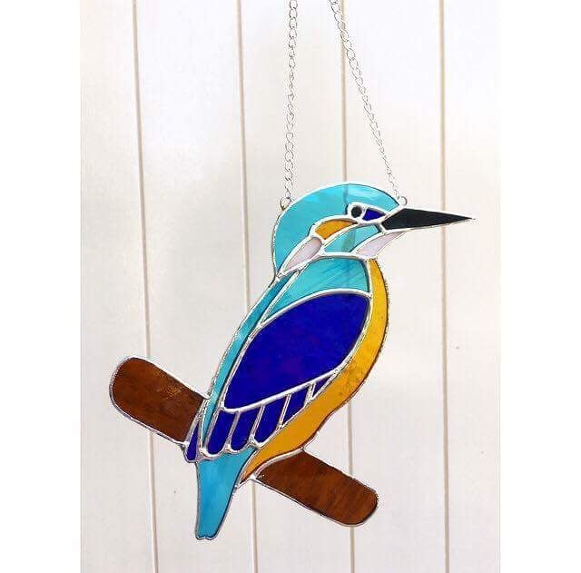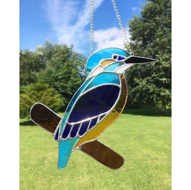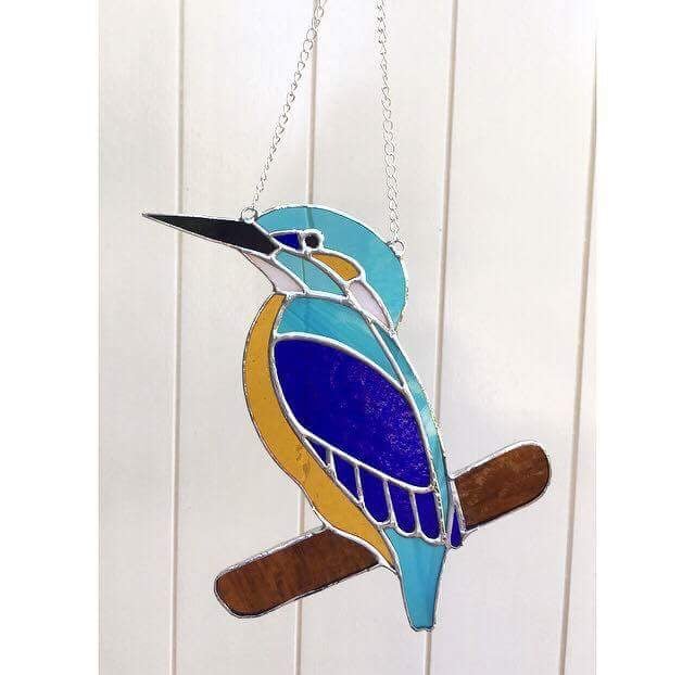 A beautiful hand-crafted stained glass Kingfisher sun-catcher made using the tiffany copper foiling technique