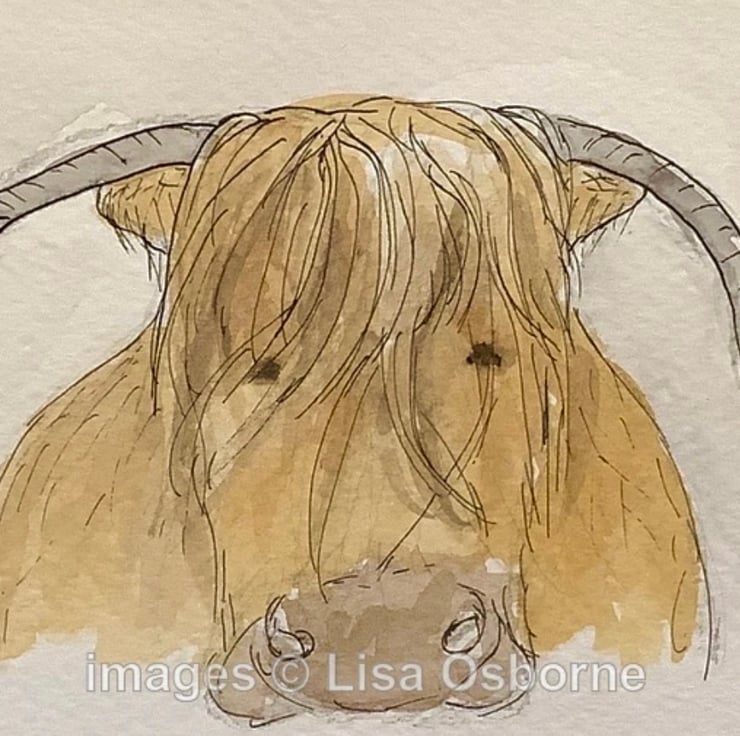 Highland cow - original painting in pen, ink, watercolour and pencil on watercolour paper.