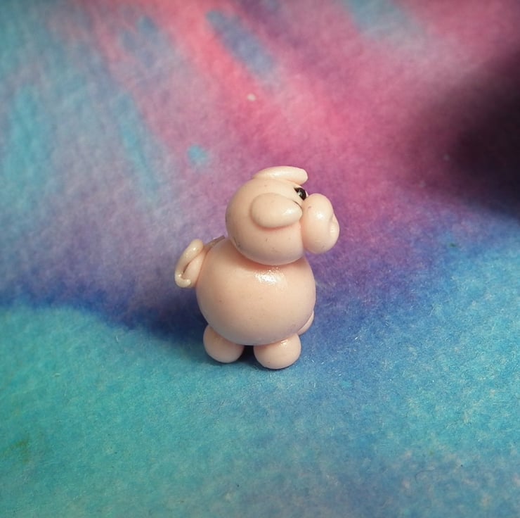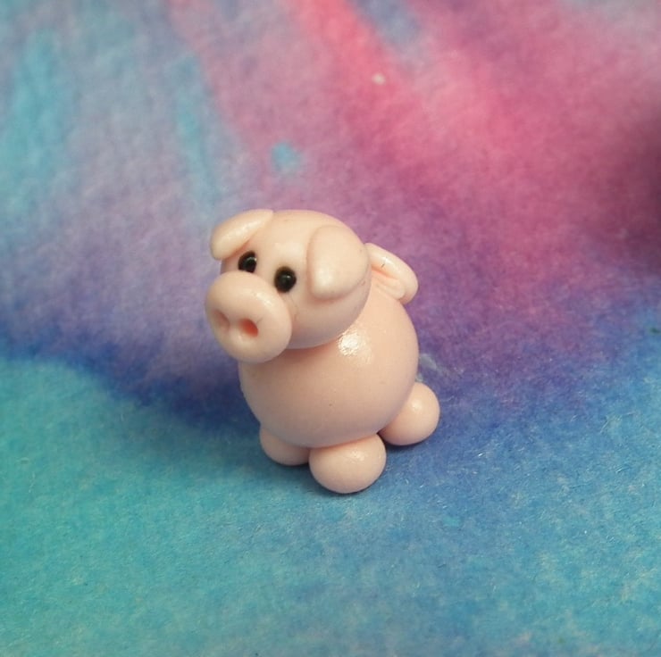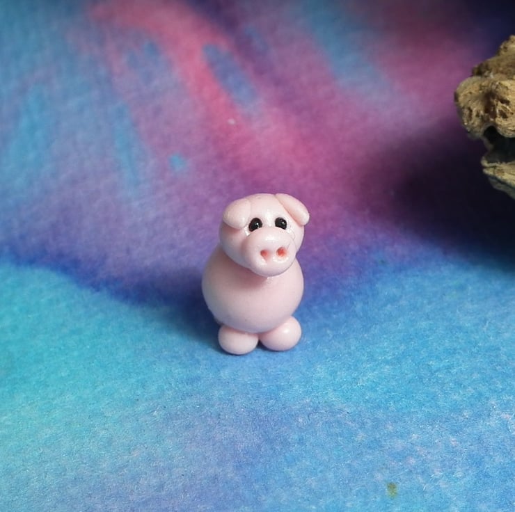 This is a 'one of a kind' creation having been entirely handmade without the use of moulds here at my studio on the Sussex Coast. Modelled with Prosculpt polymers, painted with heat set paints before sealing with lacquer, this piglet has sparkling black glass eyes. The piglet measures half an inch.